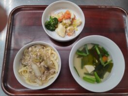 2026.02.05きのこスパゲティ/のりまきおにぎり今日のお献立/わらしこ保育園