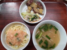 2026.03.26鮭の和風スパゲティ/ピラフ風おにぎり今日のお献立/わらしこ保育園
