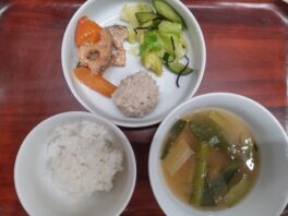 2026.03.05鶏肉のみそ焼き/大学いも今日のお献立/わらしこ第2保育園