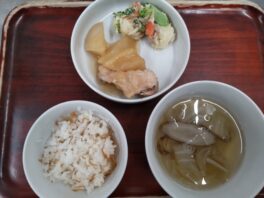 2026.01.22 今日のお献立/わらしこ保育園おしながき ・じゃこのくぎ煮ごはん ※兵庫県の郷土料理『いかなごのくぎ煮』をちりめんじゃこで作りました。 ・鶏手羽元と大根の煮物(大根・鶏手羽元) ・ポテトサラダ(じゃがいも・人参・ブロッコリー) ・ごぼうスープ(ごぼう …