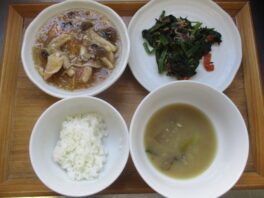 2026.01.21 今日のお献立/わらしこ保育園おしながき ・ごはん ・麻婆豆腐(豚肉・長ねぎ・椎茸の軸・にら・木綿豆腐・生姜・にんにく) ・小松菜のナムル(小松菜・キャベツ・人参・白胡麻) ・わかめスープ(人参・チンゲン菜・わかめ・白胡麻) おやつ ・ …