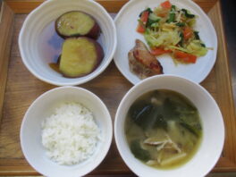 2026.01.23 今日のお献立/わらしこ第2保育園おしながき ・ごはん ・鶏肉の照り焼き ・さつまいもの煮物(さつまいも・昆布) ・春雨サラダ(キャベツ・ほうれん草・人参・えのき・春雨) ・小松菜のみそ汁(大根・小松菜・まいたけ) おやつ ・塩むすび ・大 …