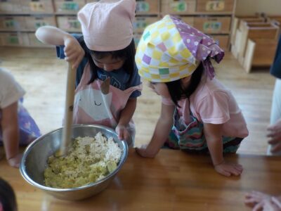 つばさ組の「お月見だんご」調理