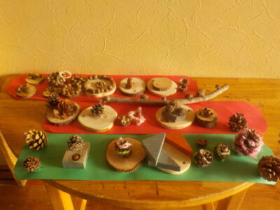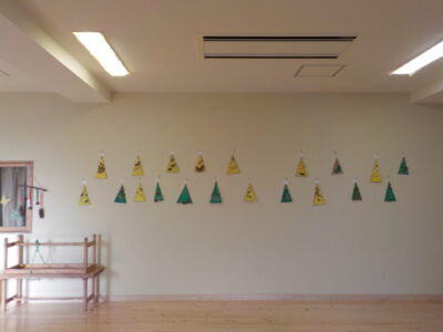 子どもたちも事前に木の枝や落ち葉、どんぐり、松ぼっくりなど自然物を使った装飾を作って飾ってくれました!