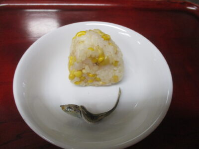 焼きししゃも/とうもろこしごはんのおにぎり