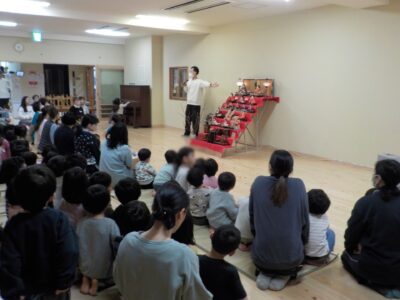 みんなで「うれしいひなまつり」の歌を歌った後、雛人形について地球さんが紹介してくれました。