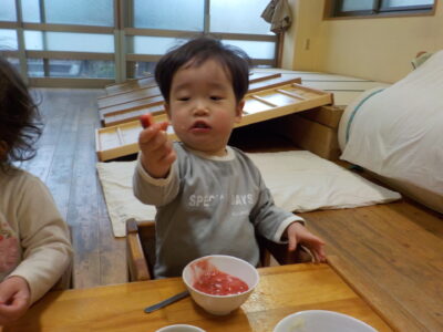 お昼ご飯とおやつはひなまつりにちなんだ行事食。