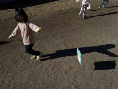たくさん走ってたくさん笑って心も身体もポカポカになった凧あげ遊び。