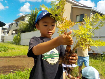 大空組(4歳児)の子ども達がつばさ組(3歳児)の時に種を蒔いて、