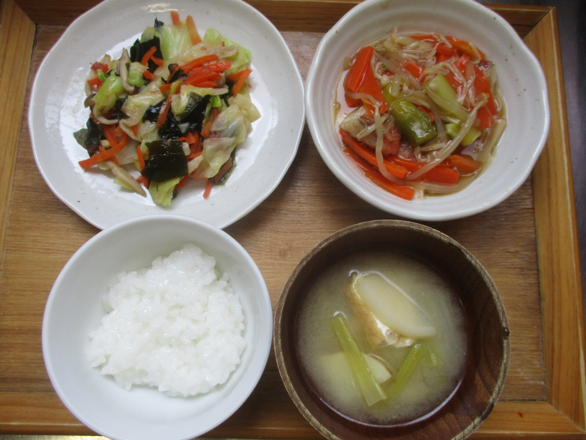 ・キャベツの梅和え(キャベツ・人参・しめじ・わかめ)