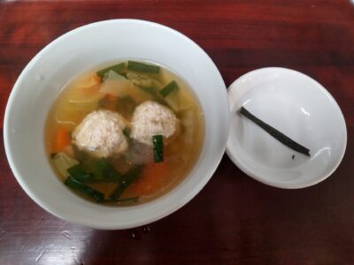 ・肉団子のスープ(鶏肉・玉ねぎ・生姜・春雨・人参・白菜・にら)