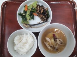 2025.10.07 今日のお献立/わらしこ保育園おしながき ・ごはん ・いわしの丸干し ・切干大根とひじき煮(切干大根・れんこん・人参・いんげん・油揚げ) ・白菜と小松菜のナムル(白菜・小松菜・人参・白胡麻) ・さつまいものみそ汁(さつまいも・玉ねぎ・しめじ) &nb …