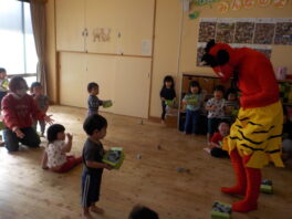 2026.02.28 わらしこ第2保育園の◯◯2月3日は節分の日の会でした。 各クラスで「豆まき」の歌や節分にまつわる絵本や紙芝居を読みました。 すると… 低くて唸るような声が聞こえてきました。 「鬼は外!福は内!」 鬼に新聞紙豆をまきました。 園の豆 …