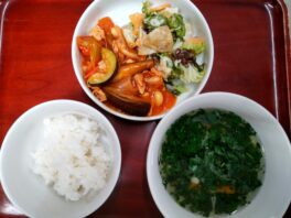 2025.08.20 今日のお献立/わらしこ保育園おしながき ・ごはん ・鶏肉のトマト煮 (鶏肉・玉ねぎ・トマト・しめじ・なす・ズッキーニ・大豆) ・ポテトサラダ(じゃがいも・にんじん・玉ねぎ・サニーレタス) ・モロヘイヤのスープ(モロヘイヤ・にんじん・えのき) &nb …