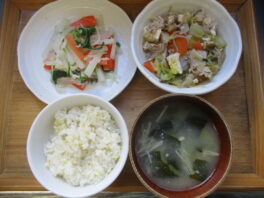 2025.11.20 今日のお献立/わらしこ第2保育園おしながき ・雑穀ごはん(もちあわ・もちきび) ・白菜のすき煮(豚肉・白菜・人参・しいたけ・長ねぎ・焼き豆腐) ・大根のサラダ(大根・人参・水菜・ほたて缶) ・さといものみそ汁(ごぼう・えのき・さといも・わかめ) &nb …